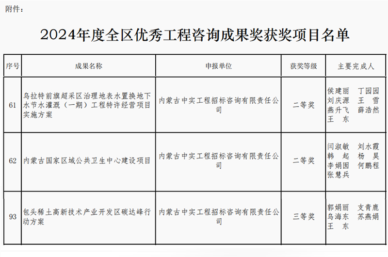 2025-04-167879 次2025年4月16日,内蒙古工程咨询协会公布了2024年度优秀咨询成果奖获奖单位名单,我司取得两个二等奖和一个三等奖,我司专业能力和服务质量再次获得行业的认可。此次获奖,不仅体…