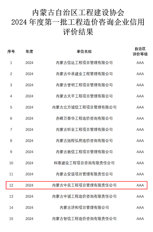 2024-07-3014650 次近期,我公司参加内蒙古自治区工程建设协会组织的“2024年度第一批工程造价咨询企业信用”申报,获得“信用AAA级证书”。我公司成立多年以来,遵循中国工程造价管理协会对造价咨询企…